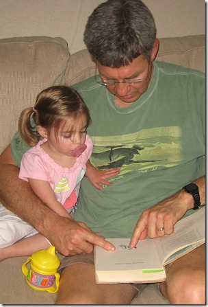On the rainy days when outdoor play wasn’t the best option – reading always was. I think this was a story from “Winnie the Pooh.”
