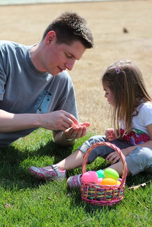 Mommy, Daddy & Alexa enjoyed a wonderful Easter weekend together at home this year (Since we have been out of our home three weeks this month, this was a treat.) It was an action-packed weekend including two Easter egg hunts, A’s 1st bike ride on OU’s campus, fountain splashing, church, resurrection eggs & Easter lunch with Mike & Ginger Tinney. The weekend was just perfect for playing outside and celebrating the resurrection of our Lord. The tomb is empty! Jesus is alive!!